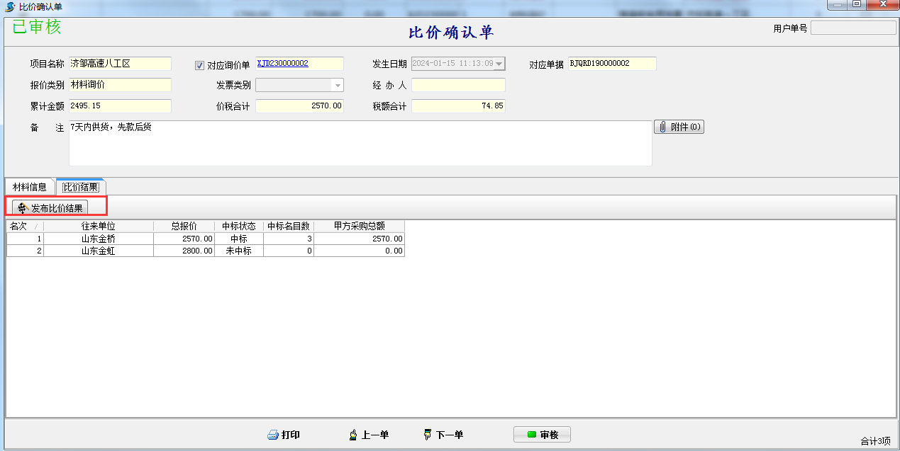 金石云商平臺增加開標結果的公示功能